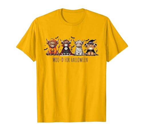 Cute Highland Cow Halloween Costume Pumpkin Witch Vampire T-Shirt, Men, Golden Yellow, Medium