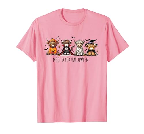Cute Highland Cow Halloween Costume Pumpkin Witch Vampire T-Shirt, Men, Pink, Medium