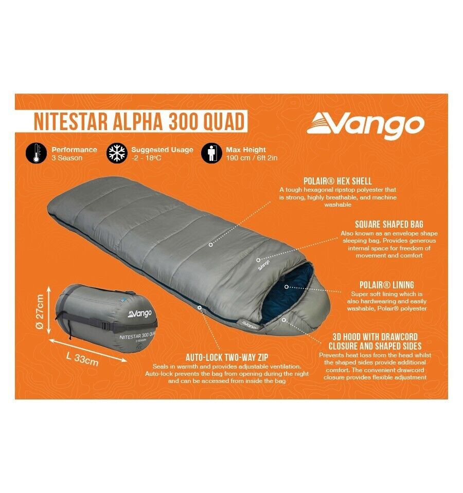 Vango Nitestar Alpha 300 Quad Sleeping Bag Square 3 Season Camping