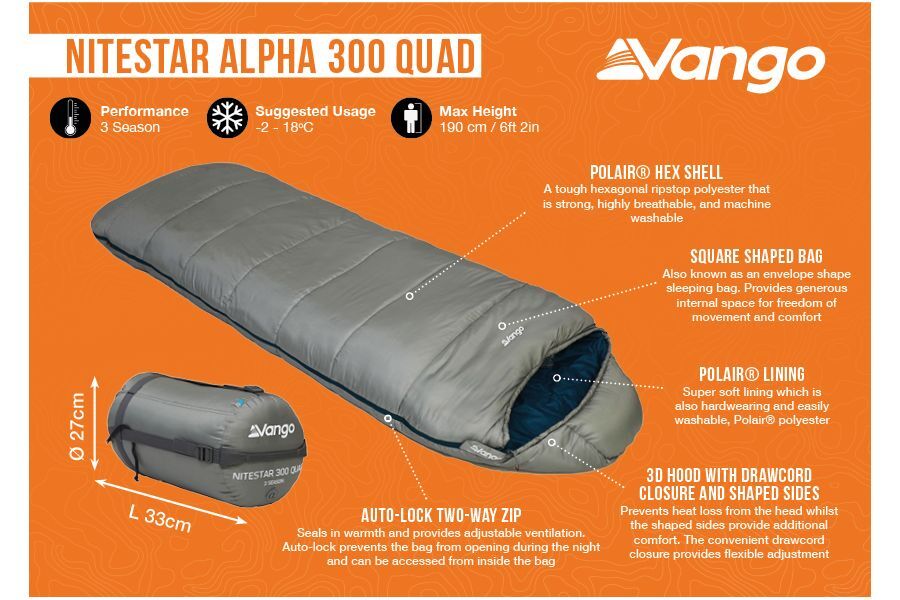 3 Season Tog 10 Warm Rectangular Sleeping Bag-Vango Nitestar Alpha 300 Quad Bag