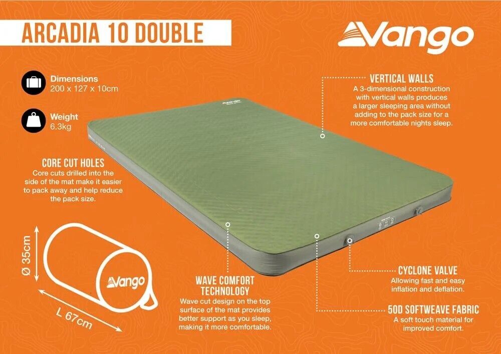 Vango Arcadia Double 10cm Mat Self Inflating Camping Mattress