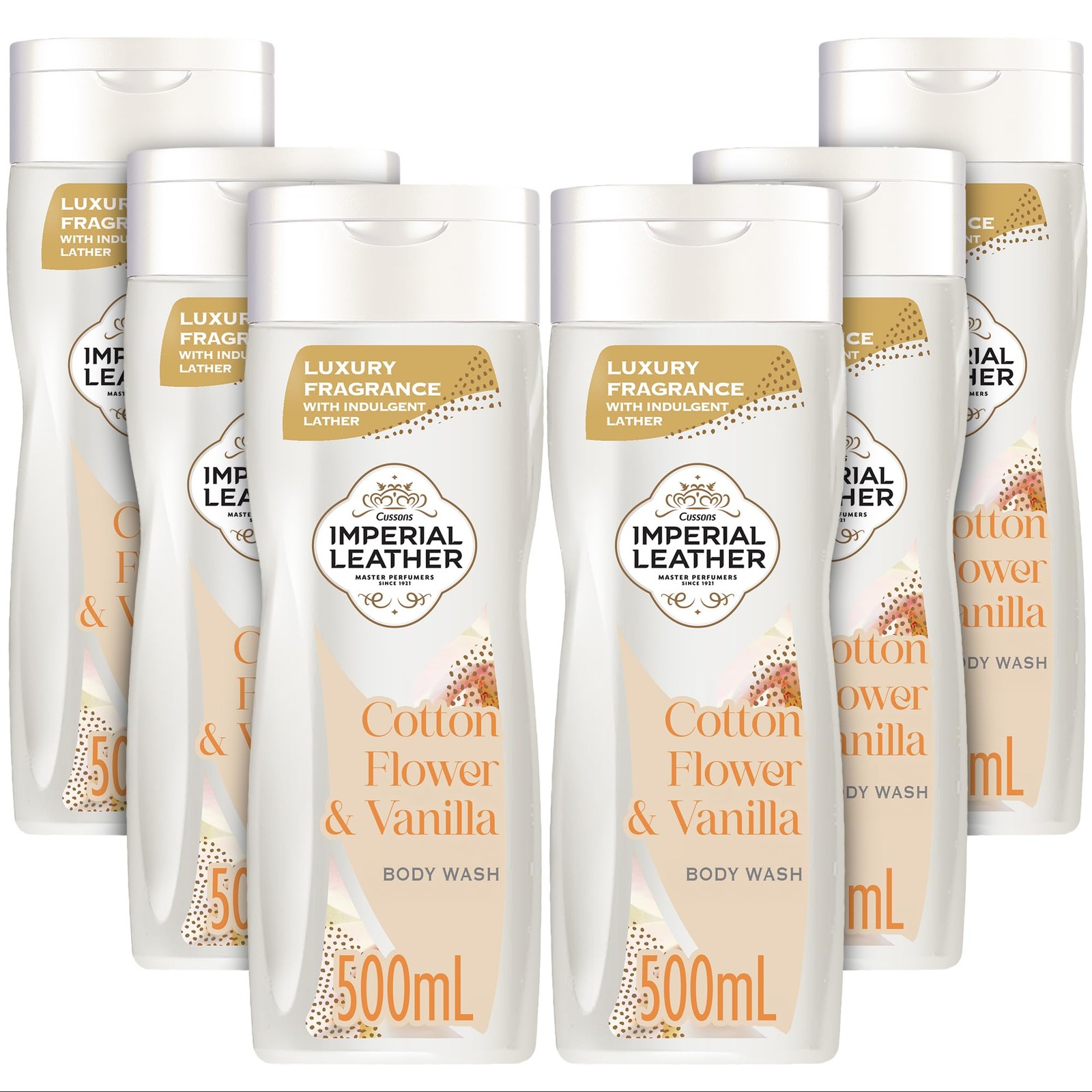 Imperial Leather Cotton Flower & Vanilla Moisturising Body Wash Shower Gel Signature Oil Blend, Creamy Lather, Gentle Skin Care, Bulk Buy, Pack of 6x500ml