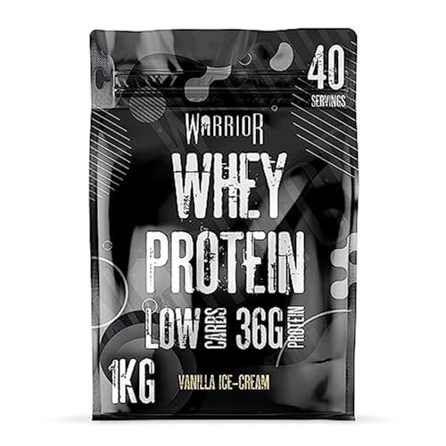 Warrior Whey Protein Powder – Up to 36g* of Protein Per Shake – Low Sugar, and Low Carbs – GMP Certified (Vanilla Ice Cream, 1kg)