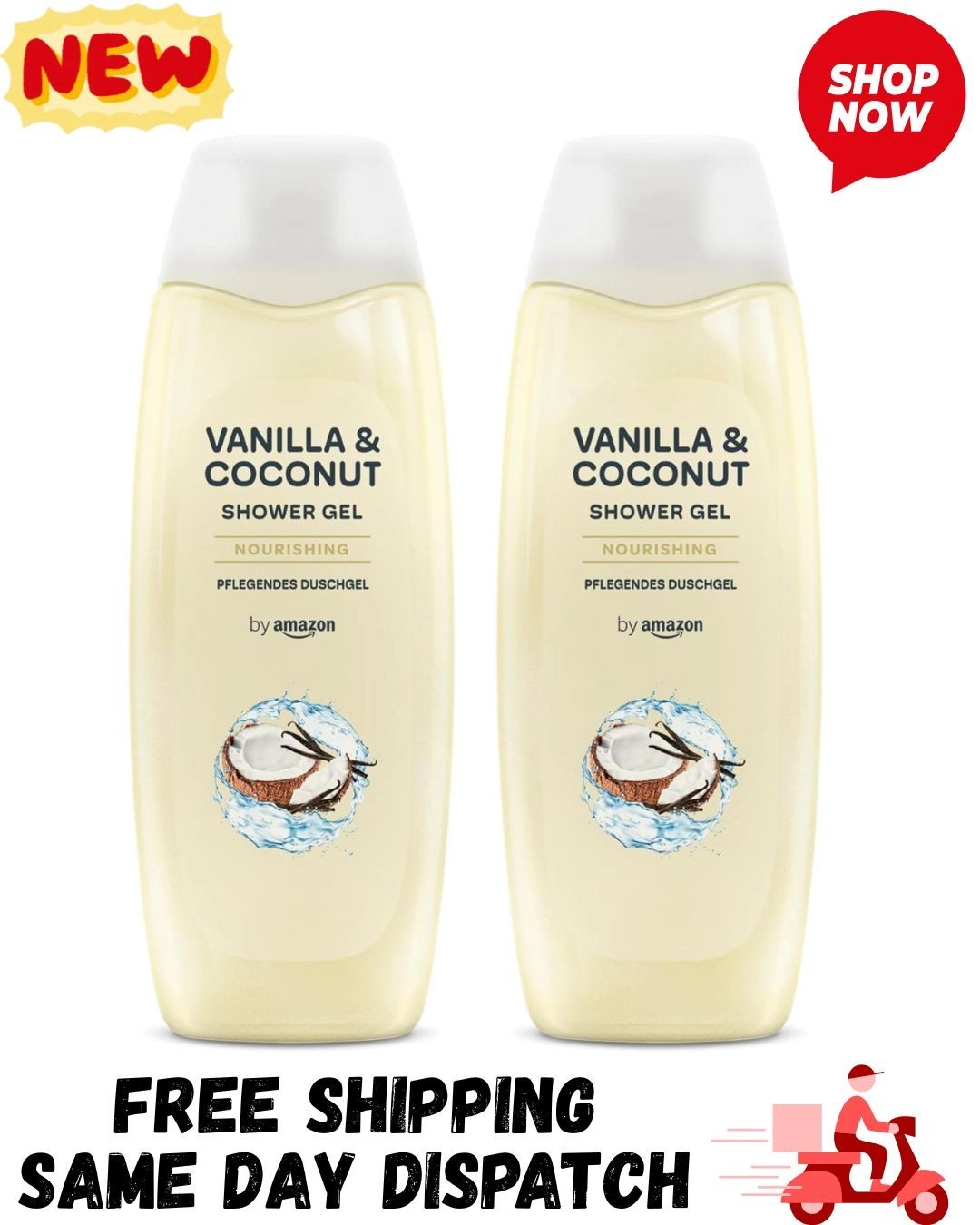 Vanilla & Coconut Shower Gel, 2 x 500ml | UK Fast Free Shipping