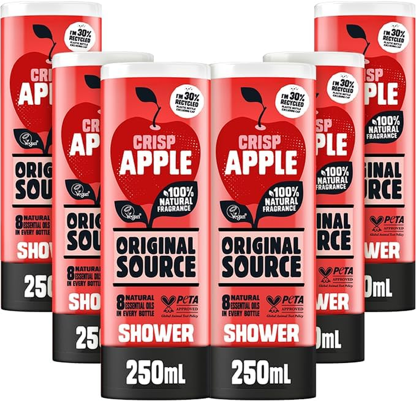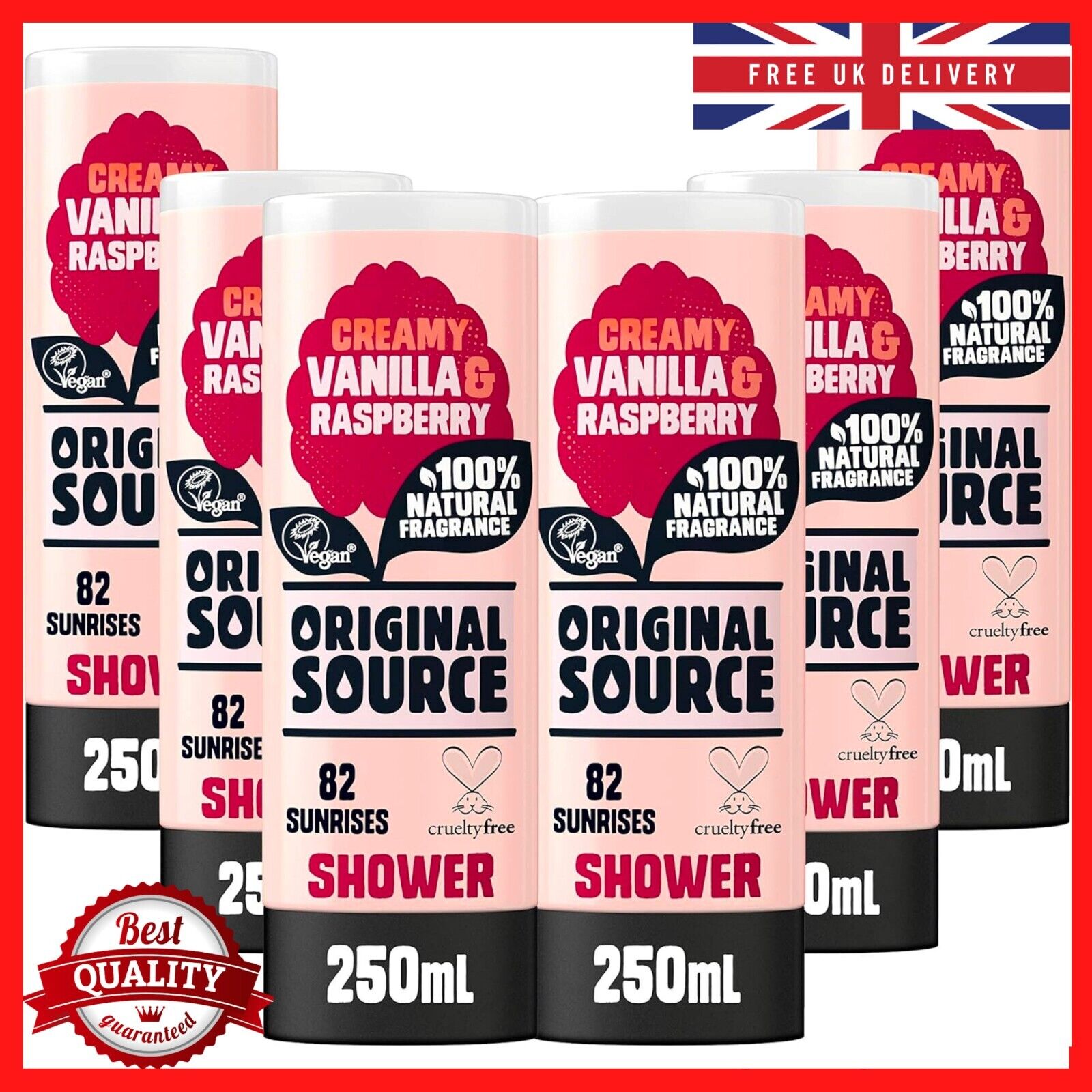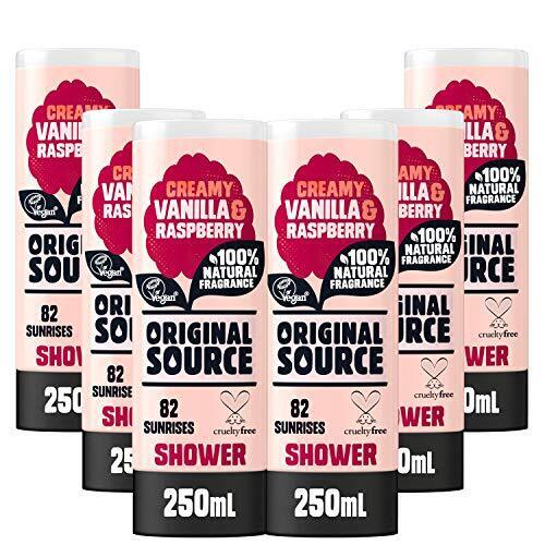 Original Source Vanilla & Raspberry Shower Gel, 100 Percent Natural Fragrance, Vegan, Cruelty Free, Paraben Free, Bulk Buy, Pack of 6 x 250 ml