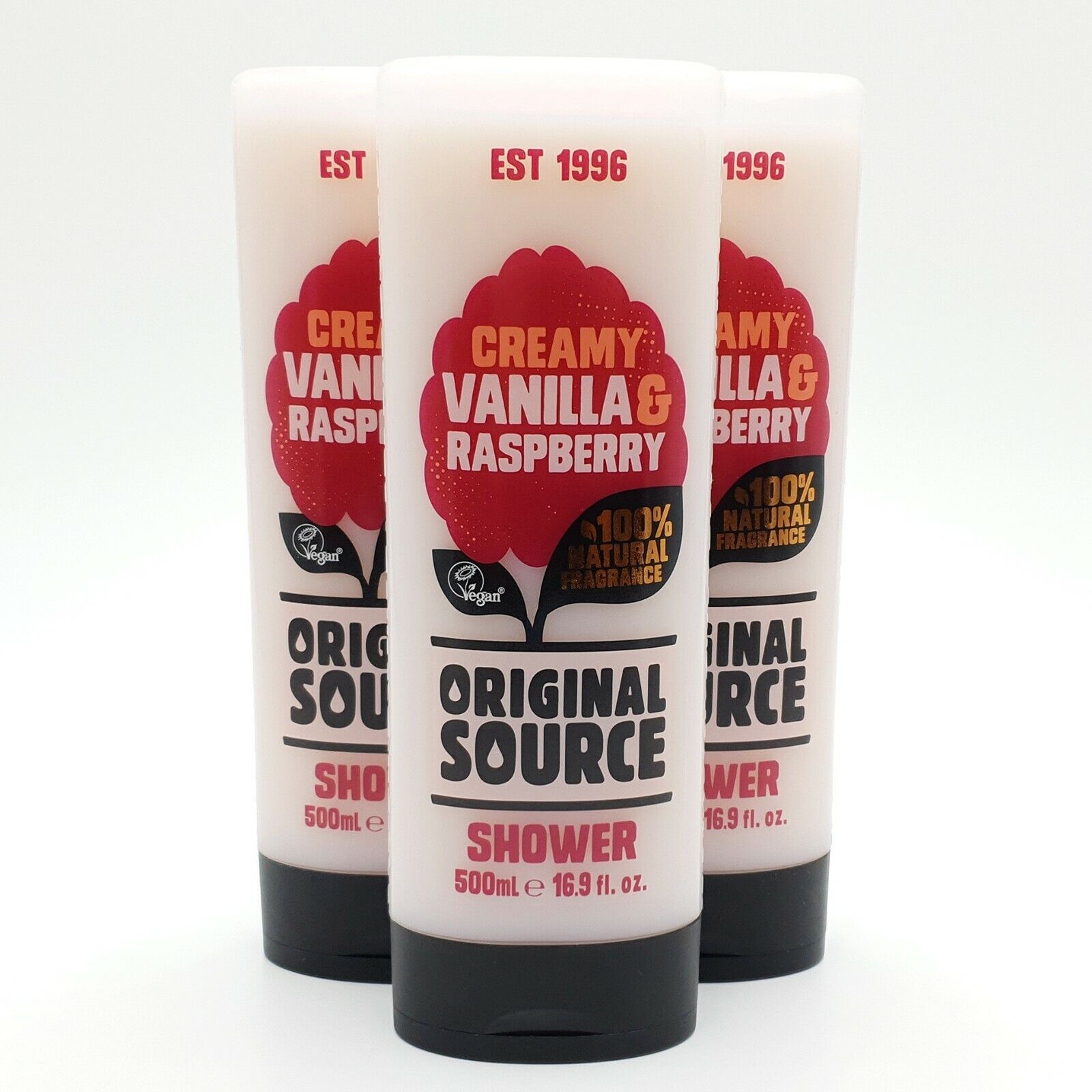 ORIGINAL SOURCE CREAMY VANILLA & RASPBERRY SHOWER GEL BIG 500ML BOTTLE 3 PACK