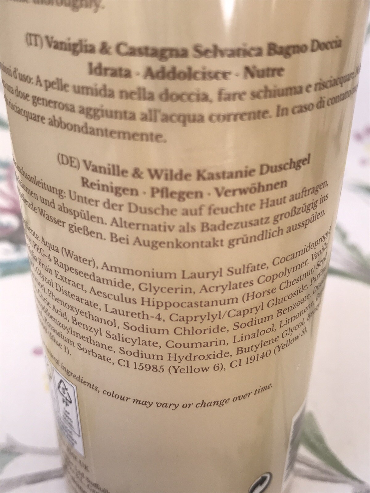 SBC Vanilla And Wild Chestnut Body Wash Bath & Shower Gel Vegan 300ml