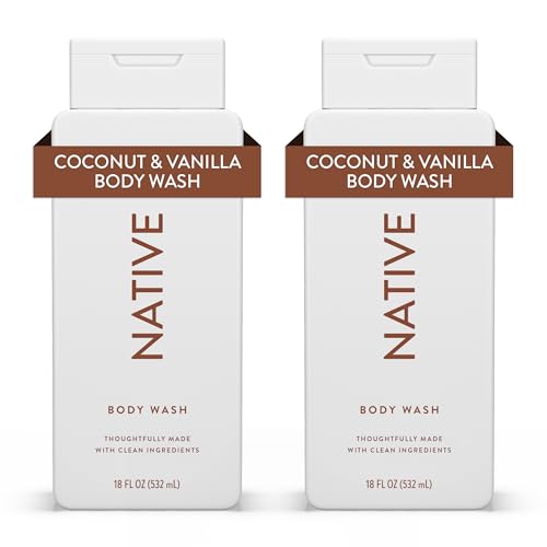 Native Shower Gel & Body Wash for Women & Men - Free of Sulphates & Dyes - Coconut & Vanilla Scent Body Soap - Gently Cleanses with Plant-Based ingredients (2 Pack, 532ml Each)