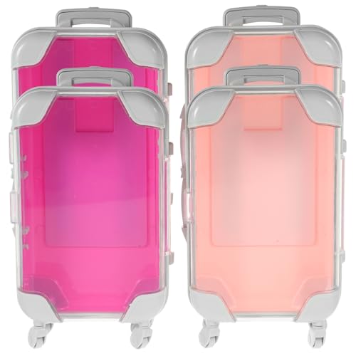 DOITOOL 4pcs Mini Hard Shell Makeup Suitcase Travel Cosmetic Organizer Case Small Portable Vanity Box for False Eyelashes Storage Pink and Rose Red
