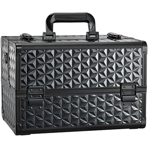 Frenessa Makeup Case 4 Trays Cosmetic Box Lockable Beauty Vanity Organiser Holder Box for Gifts, Black