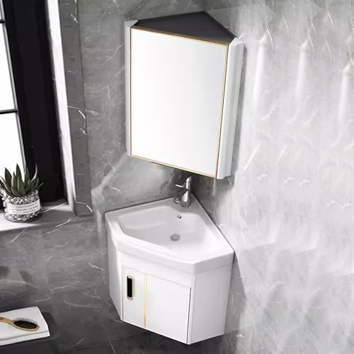 ZOCWJK Modern Corner Bathroom Vanity Set with Ceramic Sink Mirror Cabinet and Faucet Wall Mount Small Space Sink Cabinet with Drain Included (Bianco-43cm/17