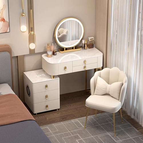 HDMBD Vanity Table Set With Mirror, Makeup Desk Vanity with Adjustable Brightness And 4 Drawers for Modern Bedroom Small Space White Dressing Table Set.