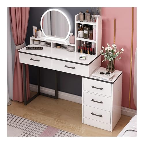 ARHAMS Makeup Vanity Table Set with LED Mirror, Cushioned Stool & Drawers, Modern Makeup Vanity, Bedroom Dressing Tables, Dressing Table Set (Color : White-1, Size : 100CM/39IN)