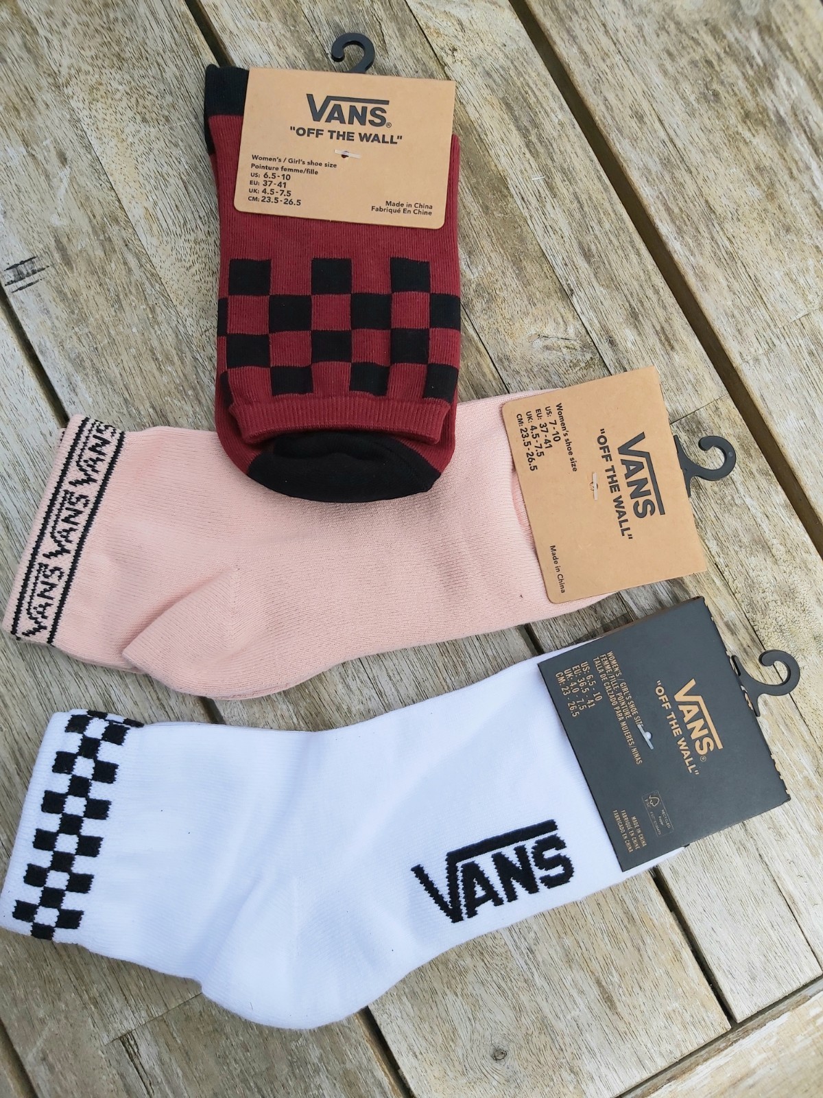 3 Pairs VANS Womens Burnt Red Ankle / White Cushioned Trainer Socks 4-7.5 37-41