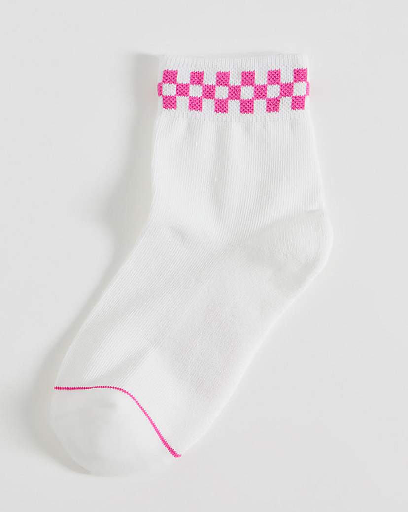 Vans Check Half Crew Socks White/Pink - VANS - Size: 4-7.5 (OS)