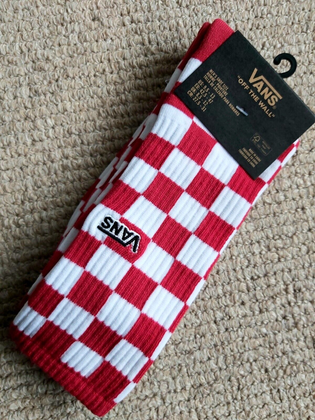 BNWT VANS Ribbed Checkerboard Crew Socks Red White Size 5½ - 8