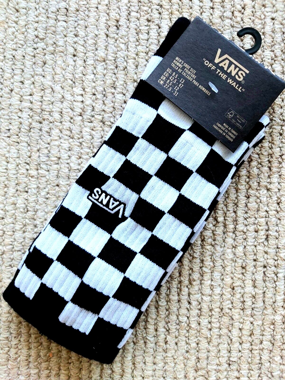 VANS UK 8.5-12 (Eu 42-47) Red White Checks OFF THE WALL Ribbed Crew Socks Adult