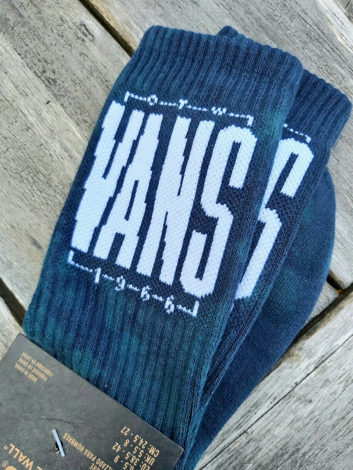 VANS 5.5-8 Eu 38-42 CUSHIONED Green Navy TIE DYE OFF THE WALL Cotton Crew Socks