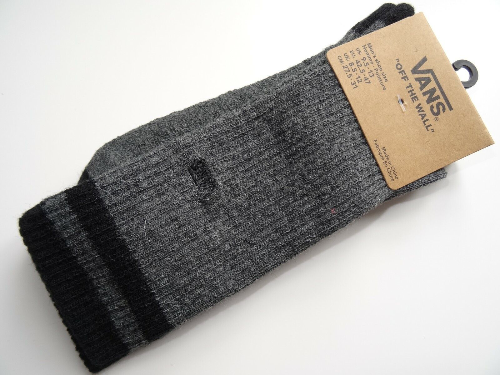 VANS UK 8.5-12 (Eu 42-47) Charcoal Wool Rib OFF THE WALL Ribbed Crew Socks Adult