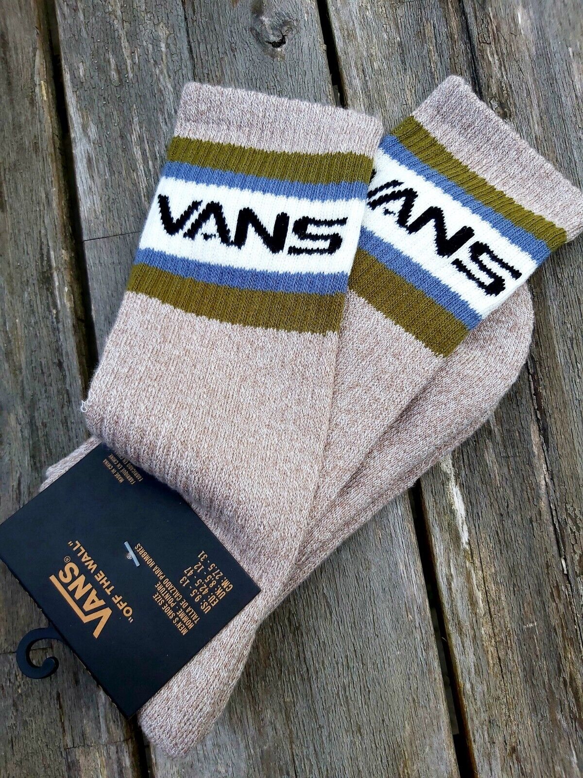 VANS 8.5-12 Eu 42-47 CUSHIONED Beige Marl Khaki Blue 73% Cotton Crew Socks