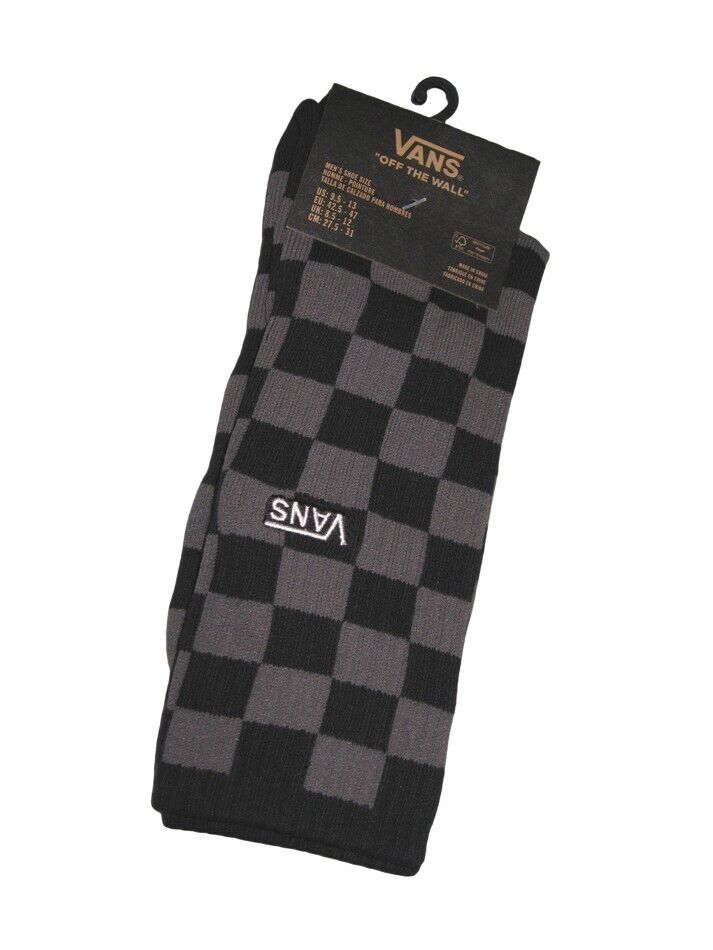 BNWT VANS Ribbed Checkerboard Crew Socks Black Grey Size 8½ - 12