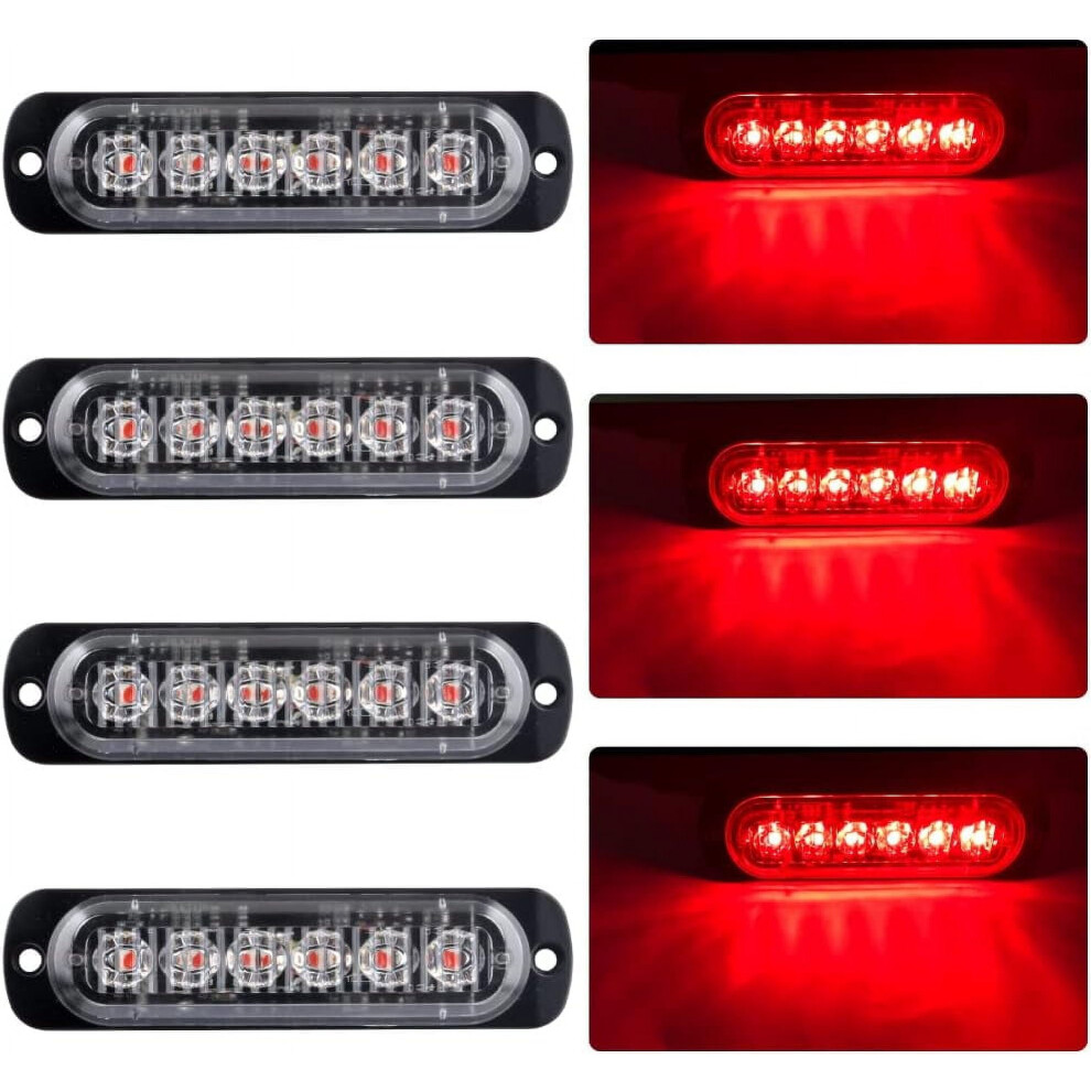 4pcs Ultra-Thin 6LED Emergency Warning Lights, Compatible with 12-24V Trucks, Trailers, Caravans, Campers, Motorcycles & Vans