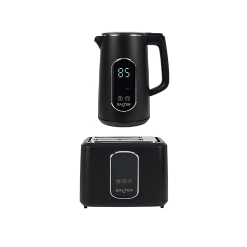 Salter Digital Kettle & Toaster Set – 1.7L Temp Rite Kettle with Variable Temperature Control, Toast Rite 2-Slice Toaster with Precise Browning Control, LED Touchscreen Displays, Black