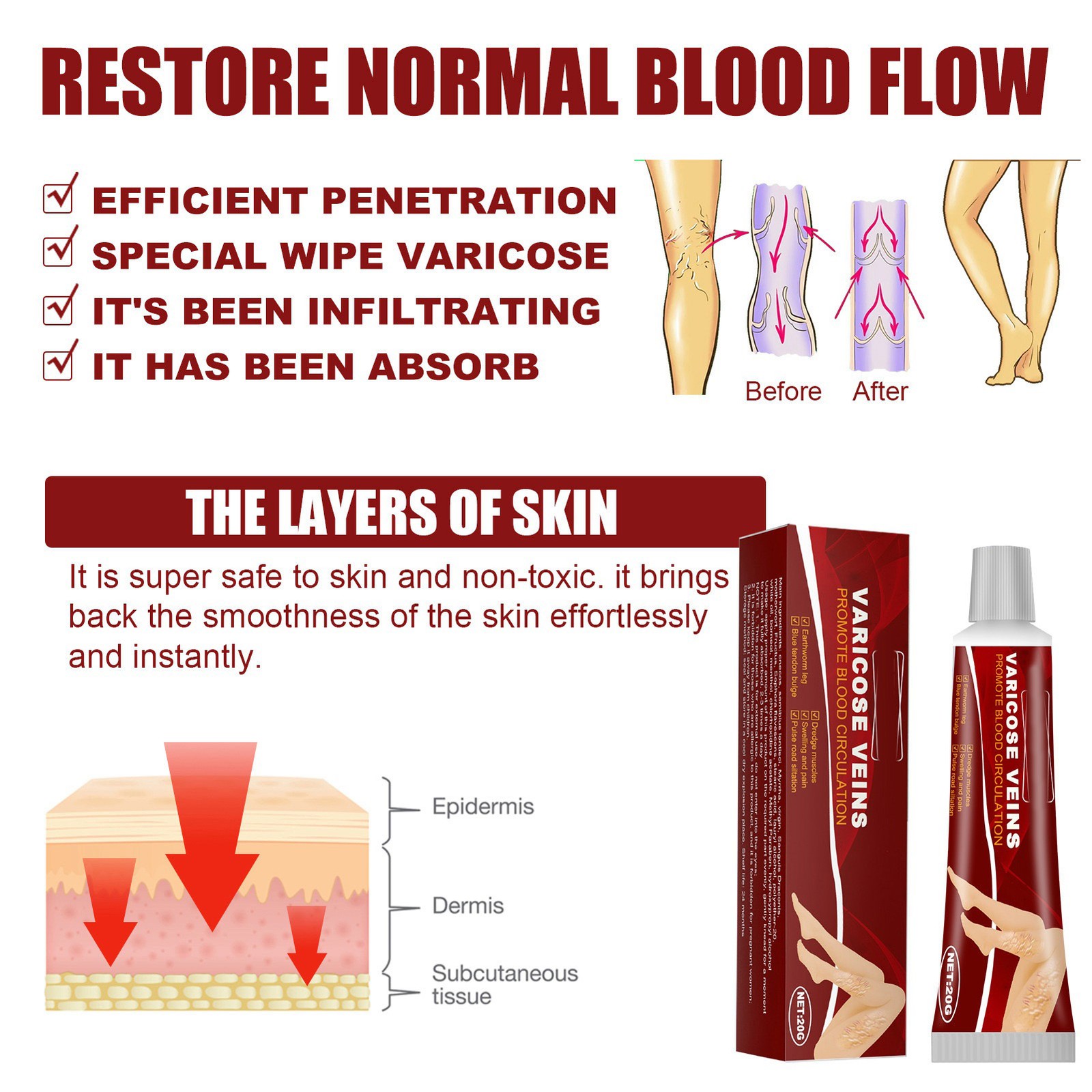 Varicose Veins Cream Natural Extracts Promote Circulation High Permeability S