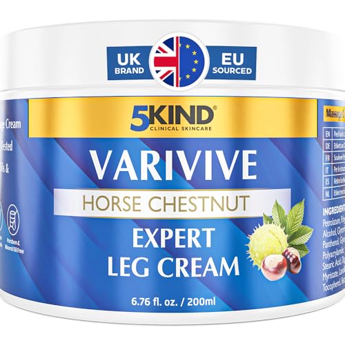 5Kind Varivive Horse Chestnut Expert Leg Cream 200ml (Formally Varicose Veins Cream) - with Zinc, Arnica & Avocado Oil - Improve Appearance & Feel Over Time - Varicose Veins Treatment for Legs