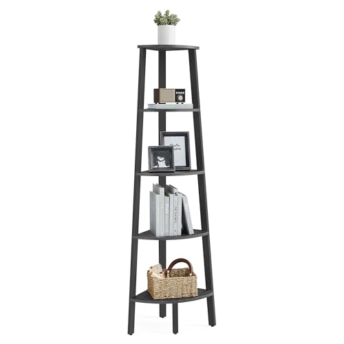 VASAGLE Corner Shelf Unit, 5-Tier Corner Shelf, Ladder Shelf for Living Room, Bookshelf or Plant Stand, Industrial Accent Furniture, Charcoal Gray and Matte Black LLS35B02
