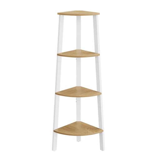 VASAGLE Corner Shelf Unit, 4-Tier Corner Shelf, Ladder Shelf for Living Room, Bookshelf or Plant Stand, Industrial Accent Furniture, Natural Oak and Matte White LLS034Y70