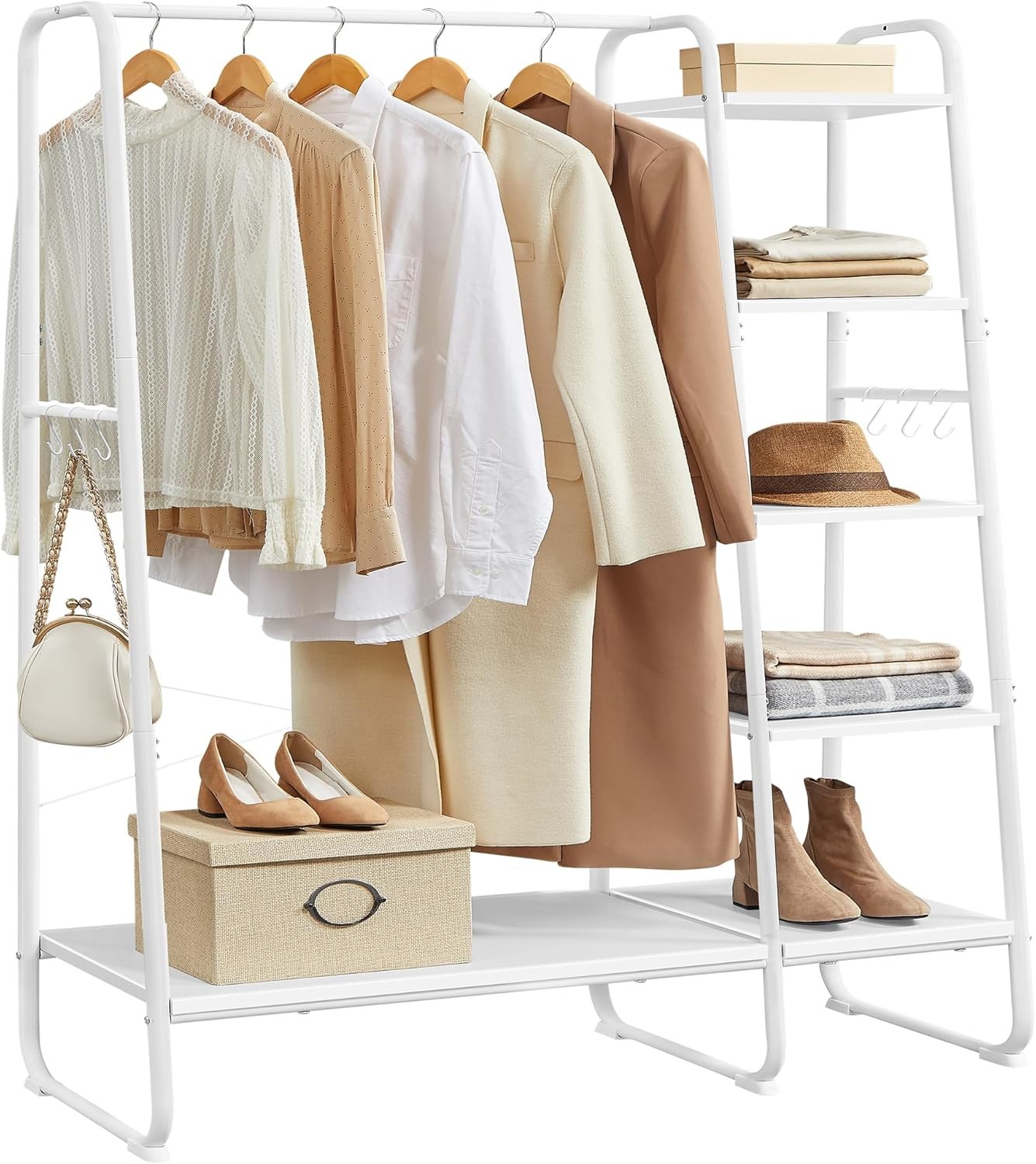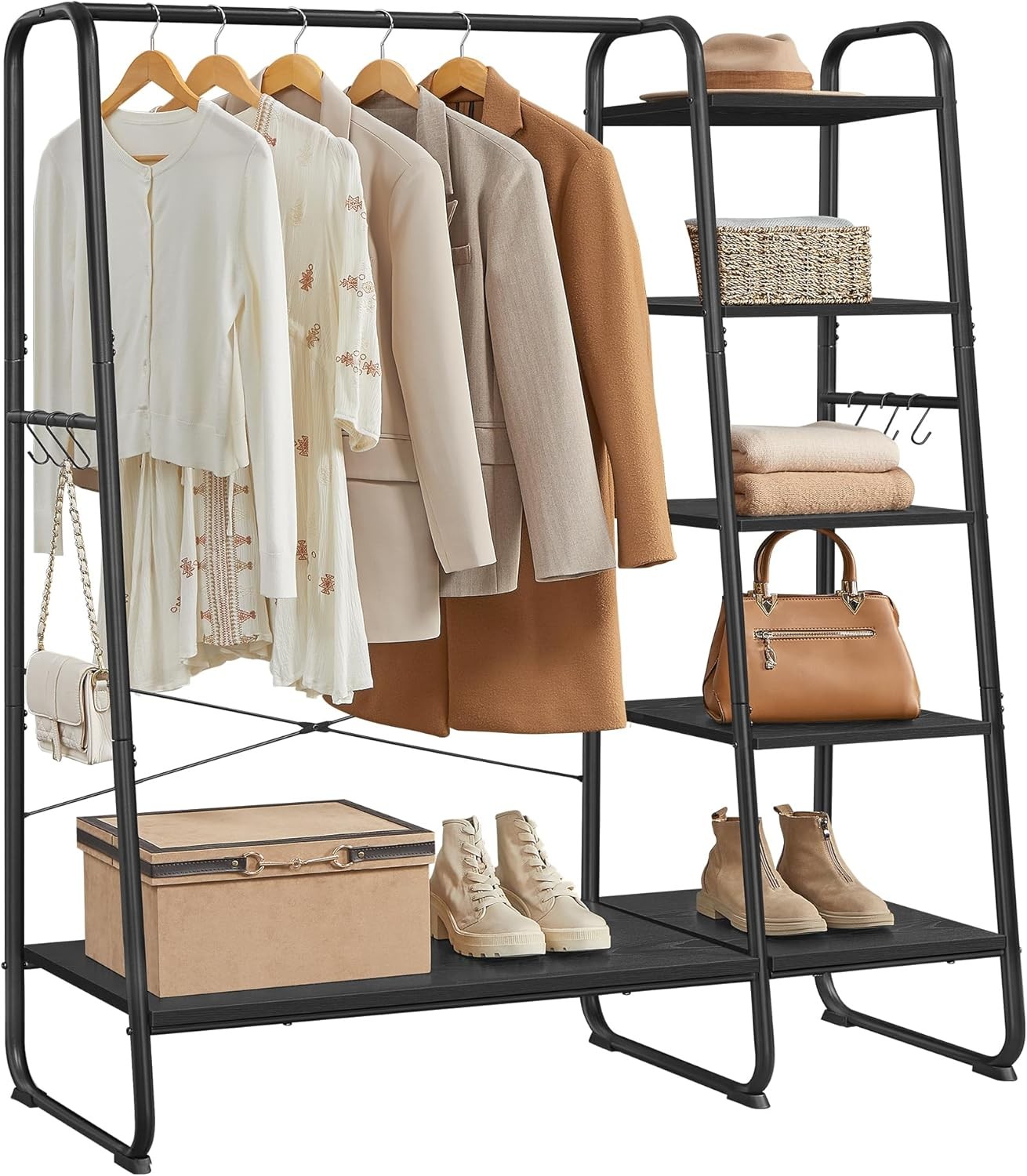 VASAGLE Clothes Rail Clothes Rack with Shoe Rack, 5 Tier Storage Rack, 6 Side H