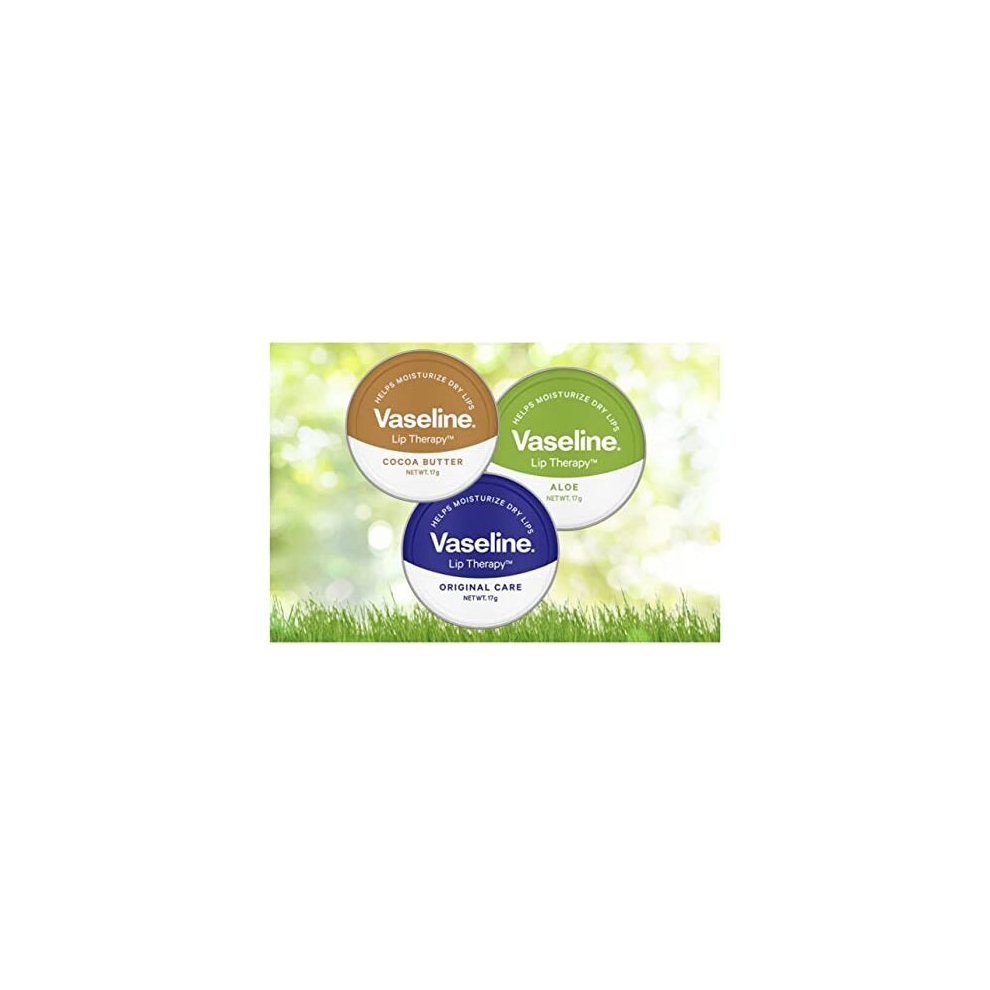 Vaseline Petroleum Jelly Lip Balms - THREE 20g Pocket Size Tins - Aloe Vera, Cocoa Butter, Original, Lip Repair Therapy Protects Dry Cracked