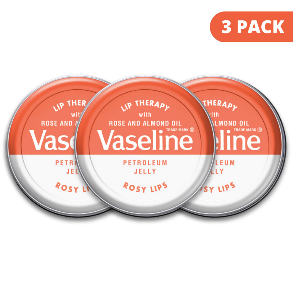 (Rosy Lips, 3 Pack) Vaseline Lip Therapy - Aloe Vera, Cocoa Butter, Rosy Lips Balm 20g New