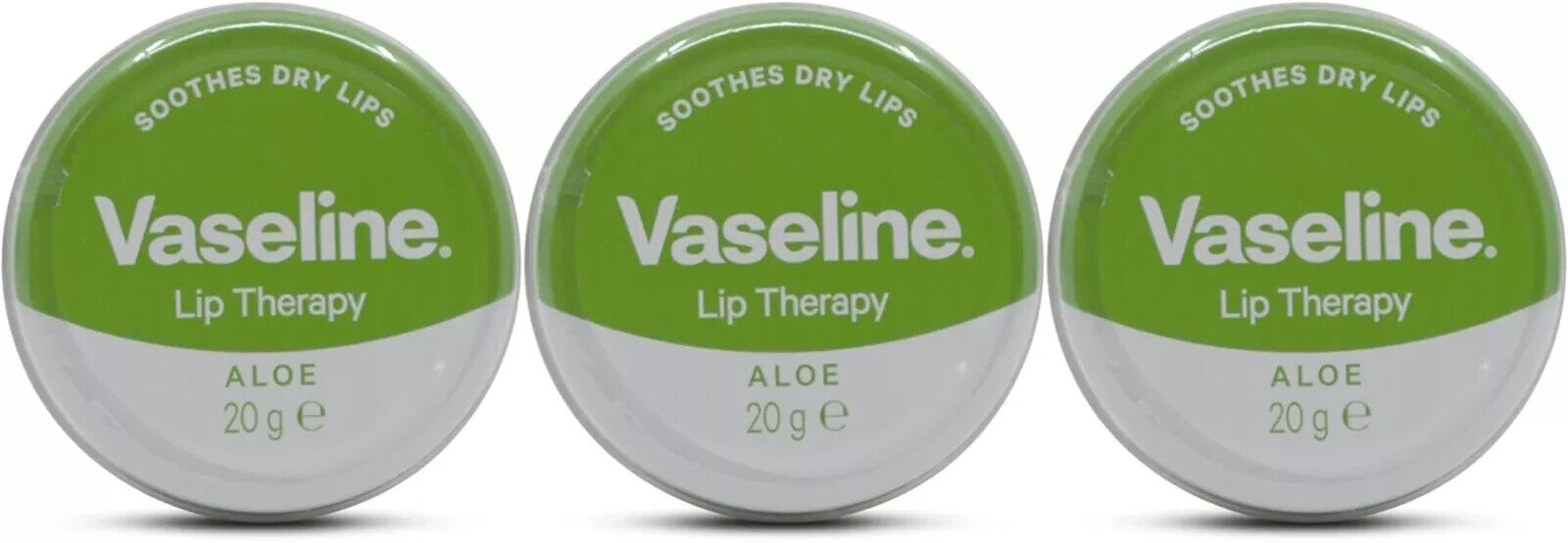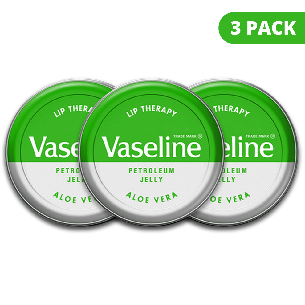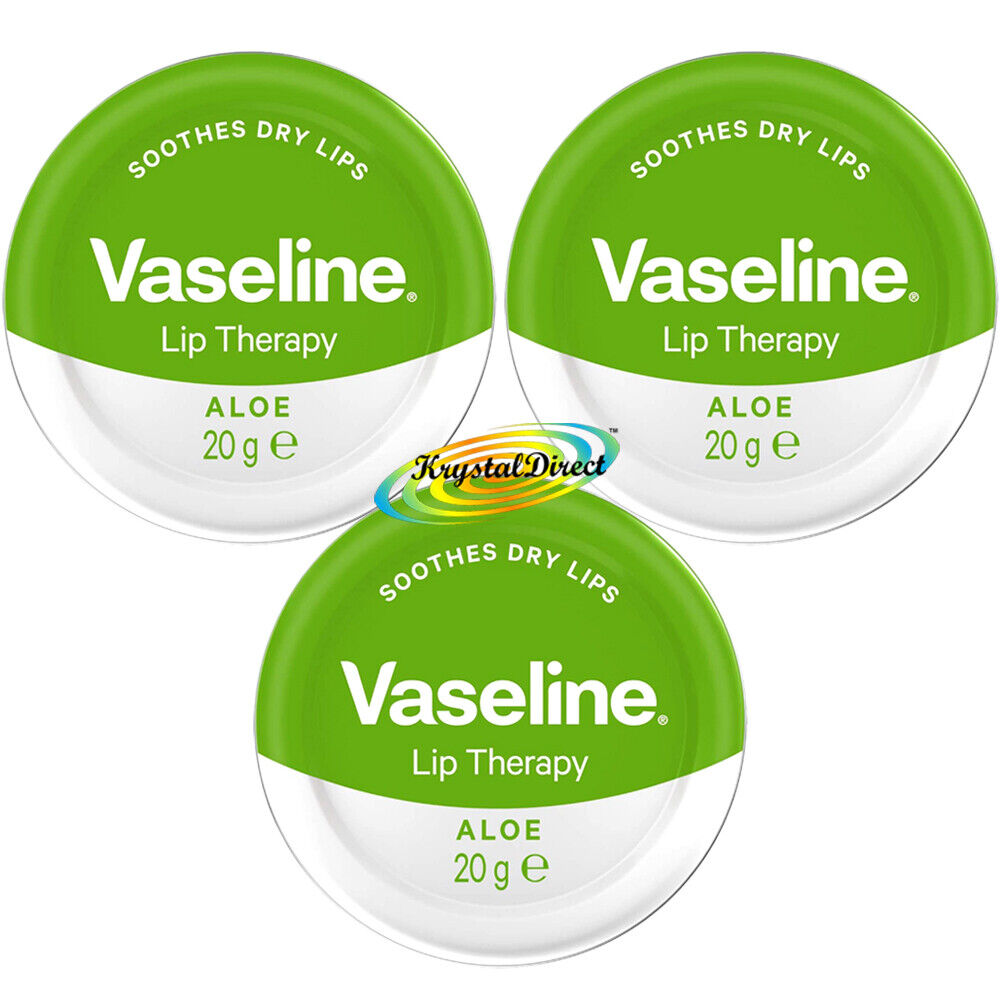 3x Vaseline Lip Balm Therapy Petroleum Jelly With Aloe Vera 20g Travel Size Pot