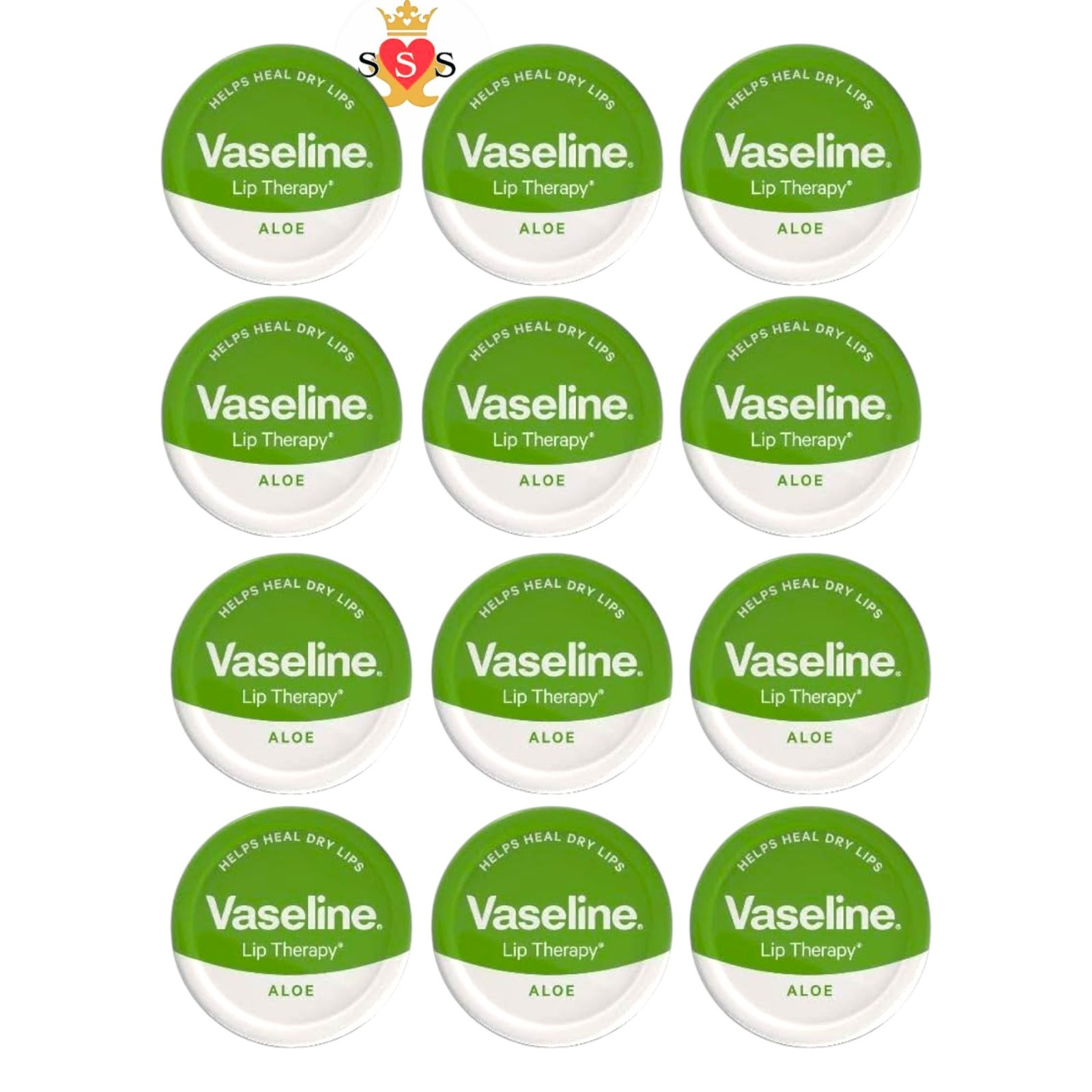 12 x VASELINE LIP THERAPY PETROLEUM JELLY ALOE VERA GREEN TIN 20g