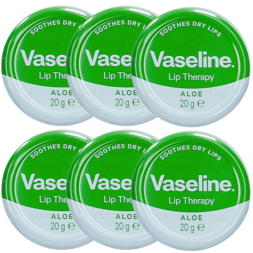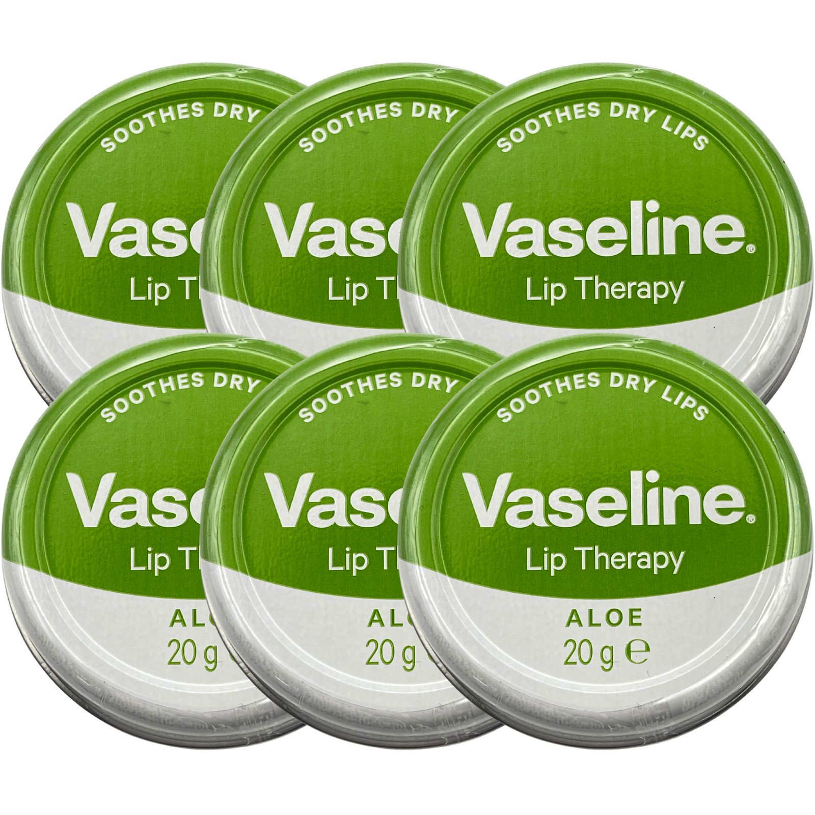 Vaseline Lip Therapy ALOE VERA Petroleum Jelly 6-Pack - 20g Tins - Xshows