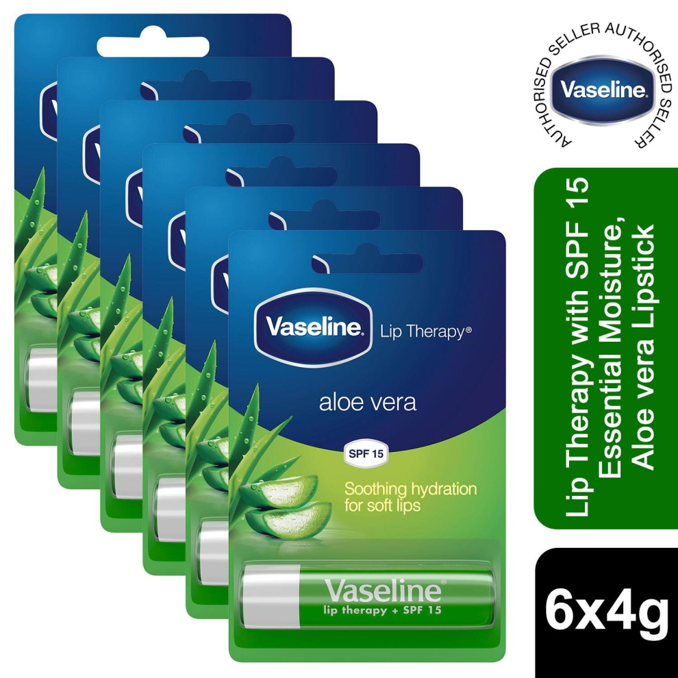 Vaseline Lip Therapy Petroleum Jelly, Aloe Vera, 6 Pack, 20gm