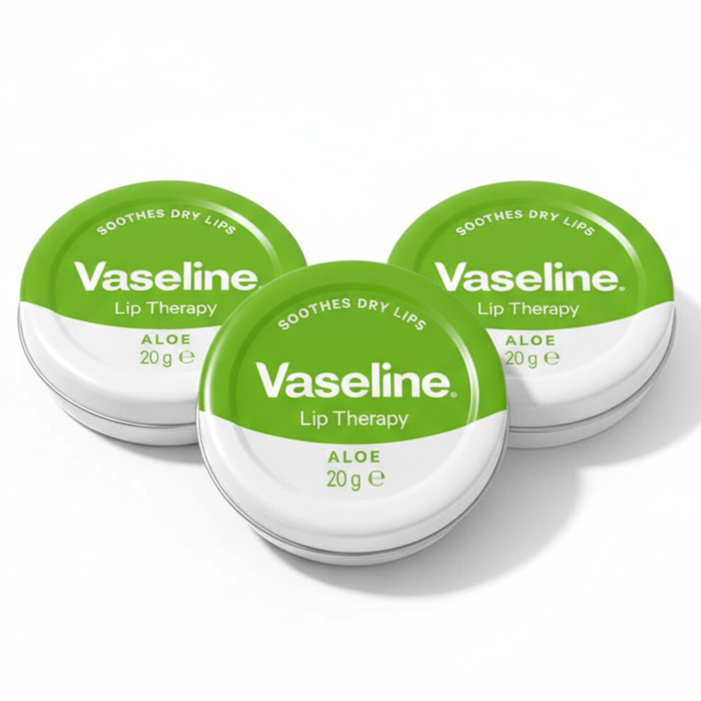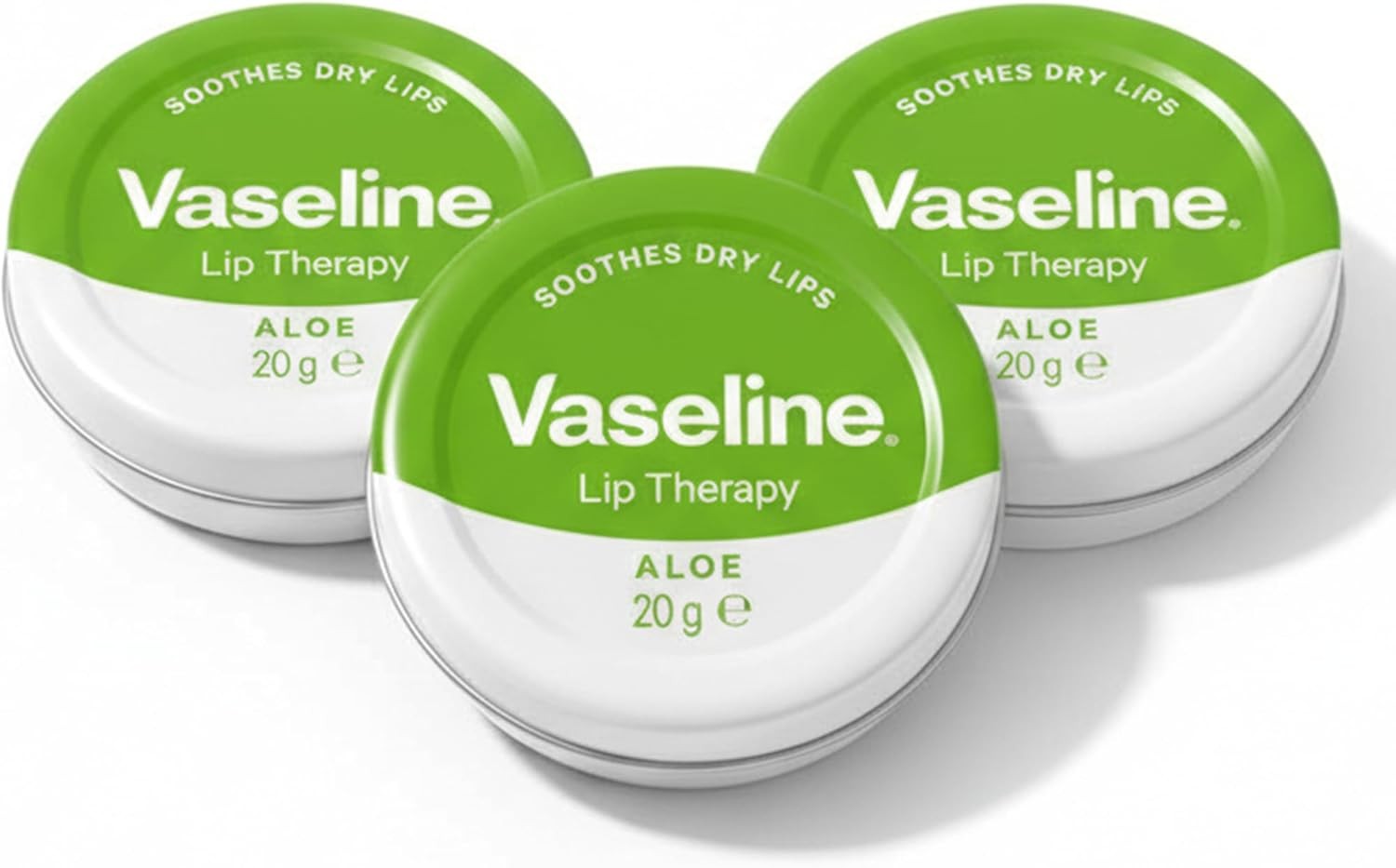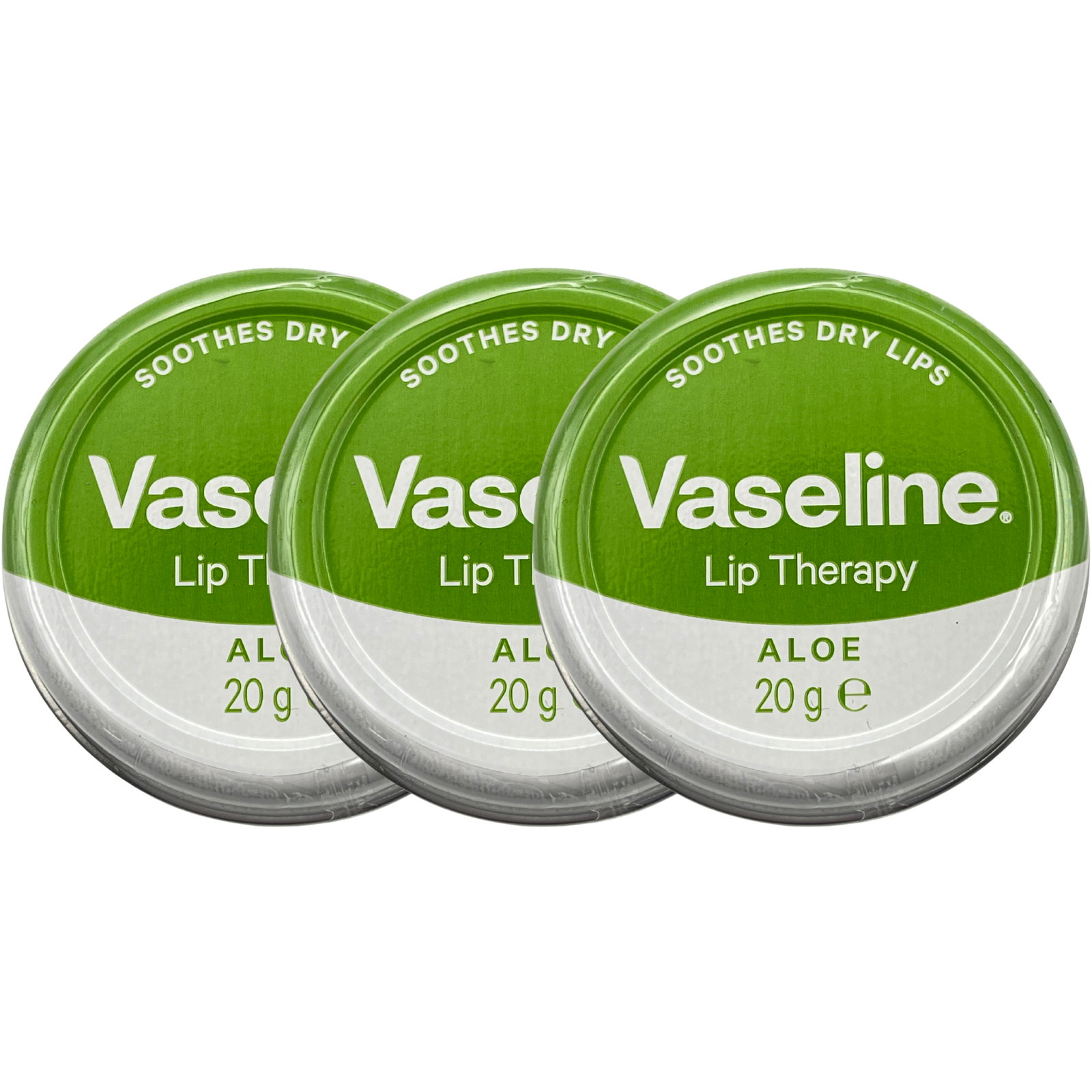 3 x Vaseline Lip Balm Aloe Vera Tin 20g : Petroleum Jelly Moisturiser for Dry L
