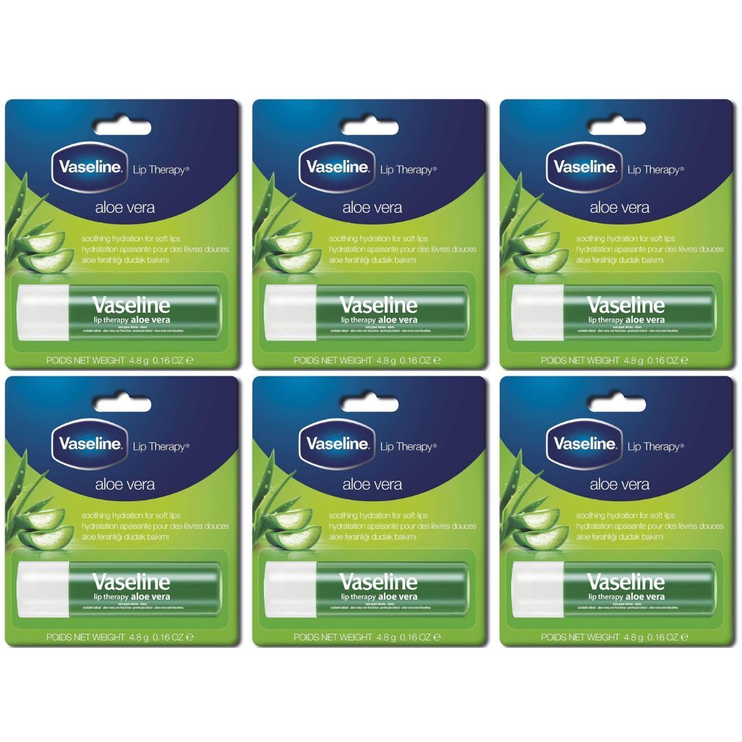 Vaseline Lip Therapy With Petroleum Jelly Balm, Aloe Vera, 6 Pack