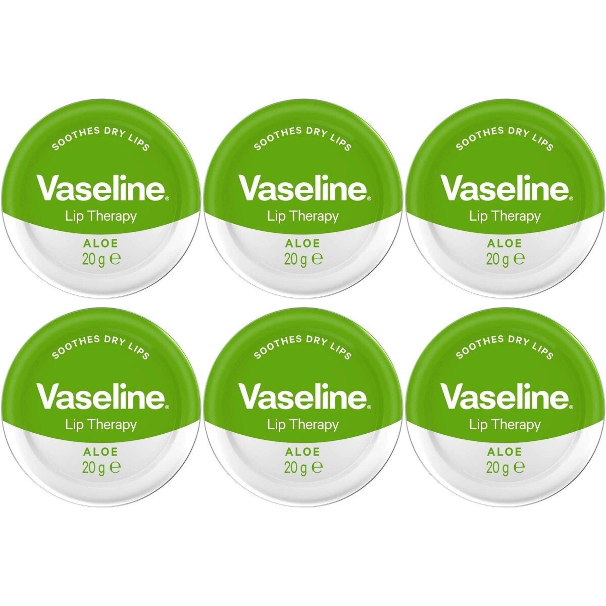 Vaseline Lip Therapy ALOE VERA Petroleum Jelly 6-Pack - 20g Tins Xshows