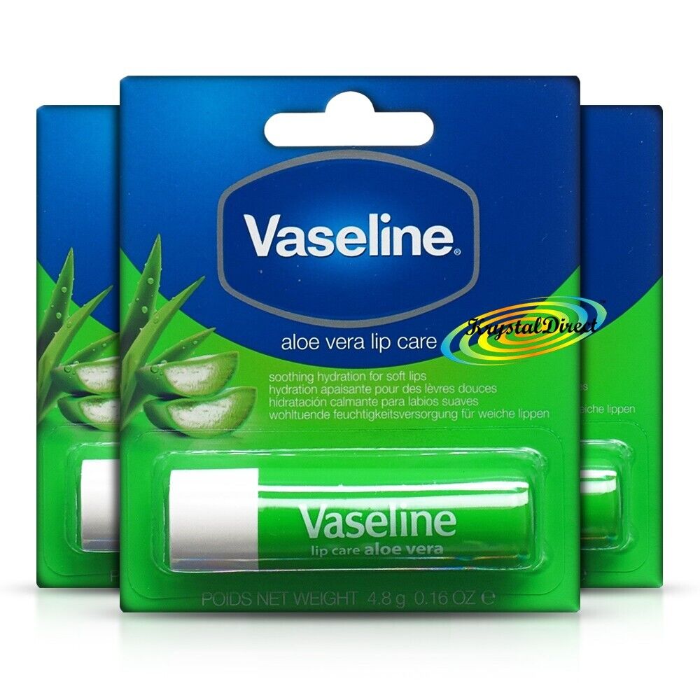 3x Vaseline Lip Stick Green Aloe Vera Lip Therapy Balm 4.8g Dry Cracked Lips