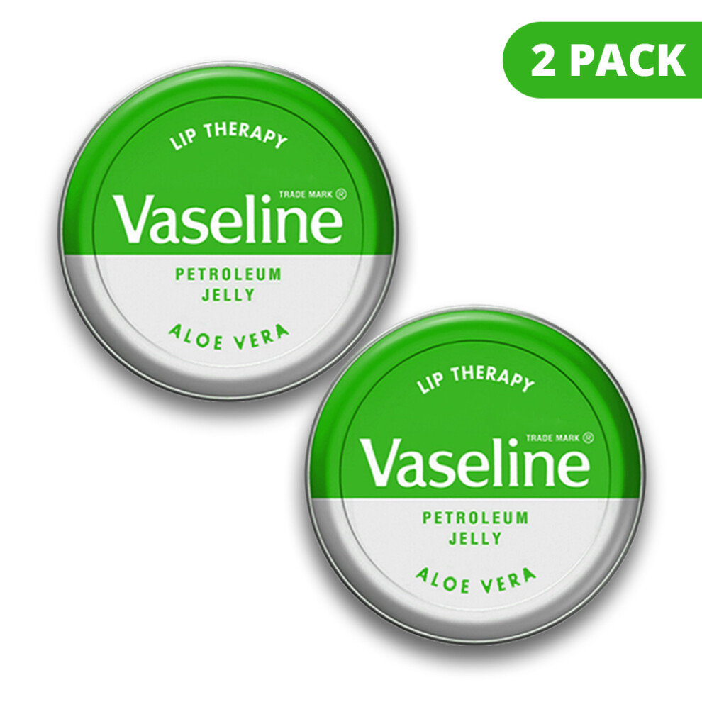 Vaseline Aloe Vera Lip for Dry Lip Petroleum Jelly Therapy - 2 x Tins of 20g