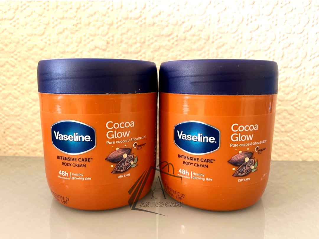 2 X VASELINE COCOA GLOW MOISTURISING BODY CREAM GLOWING SKIN PURE BUTTER 75ML