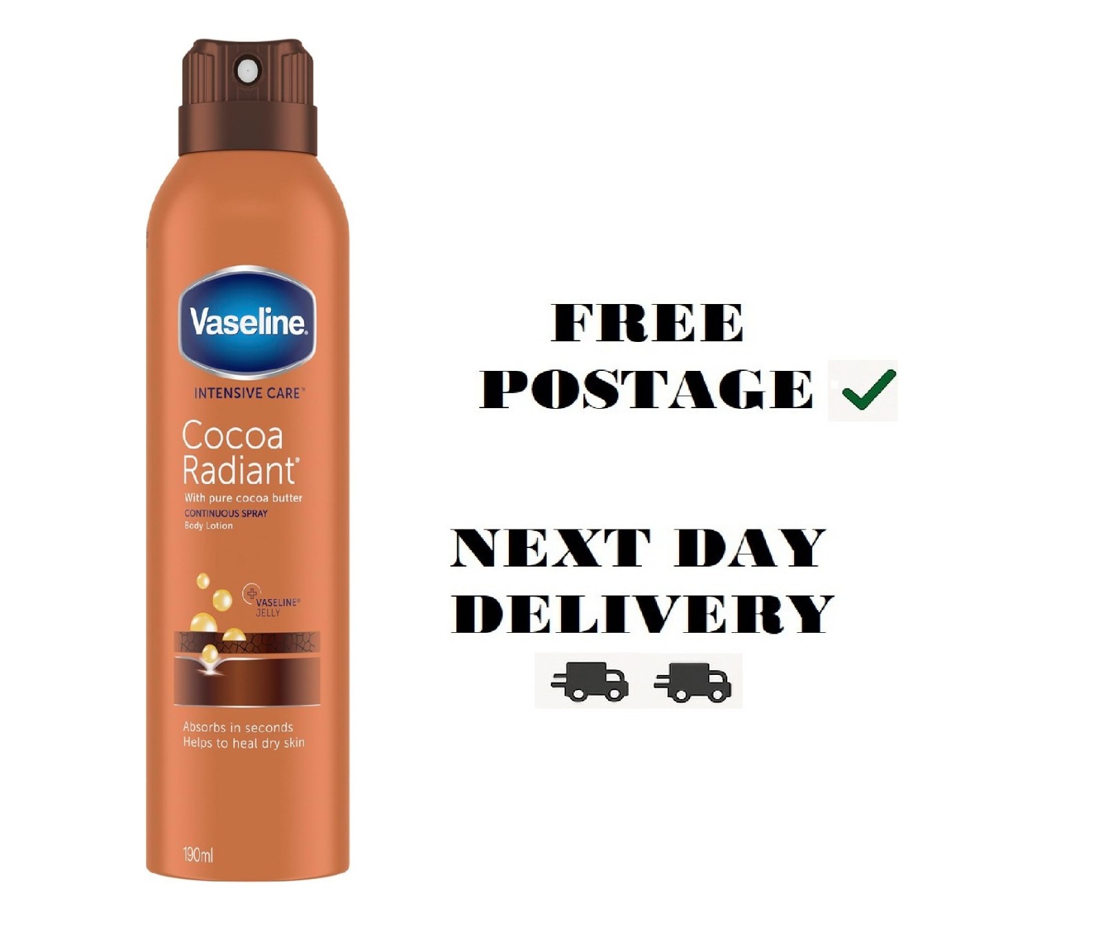 Vaseline Intensive Care Cocoa Radiant Spray Moisturiser with Vaseline jelly for