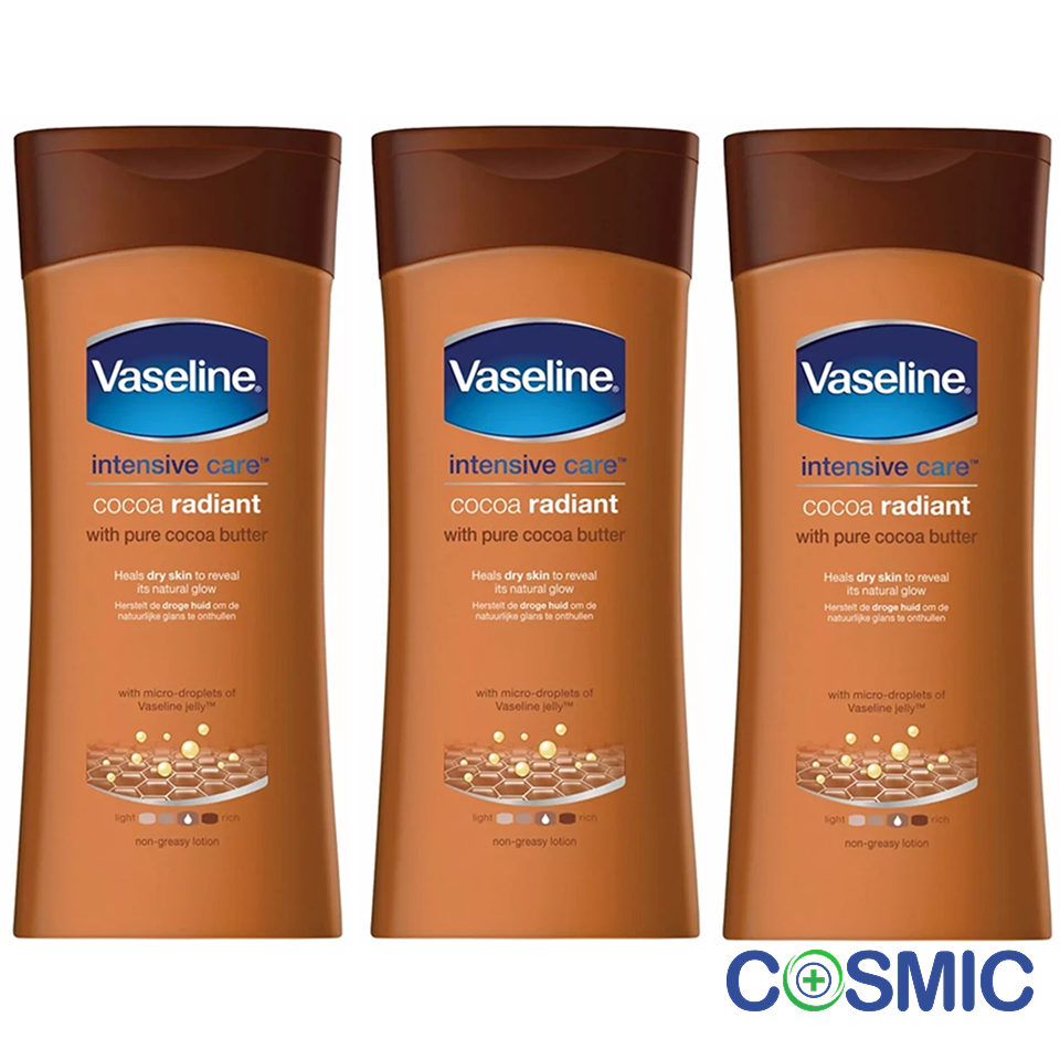 Vaseline Intensive Care Cocoa Radiant Body Lotion Non Greasy 3x 200ml lotion