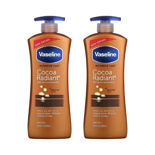 Vaseline Body Lotion Cocoa Radiant Cocoa Butter Intensive Care 600ml (Pack of 2)