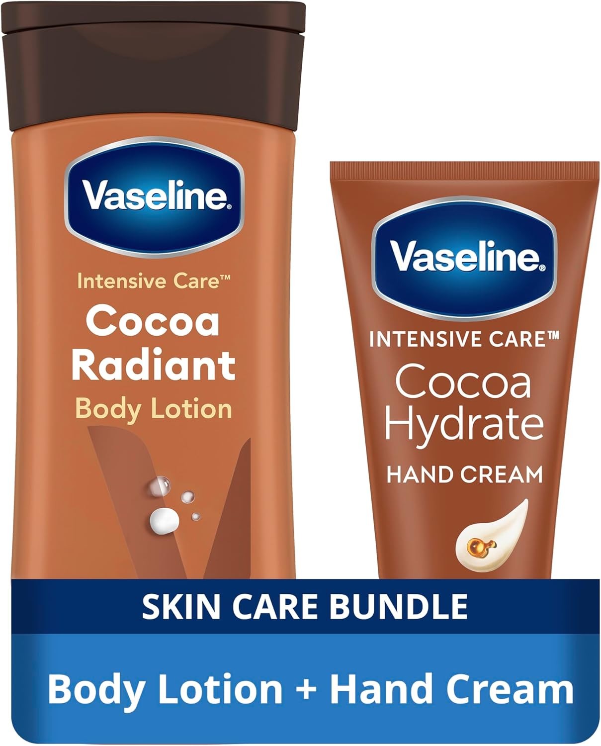 Vaseline Cocoa Radiant and Hydrate Body and Hand Care Bundle Body Lotion (200 ml) and Hand Cream (75 ml) with ultra-hydrating lipids and pure cocoa b