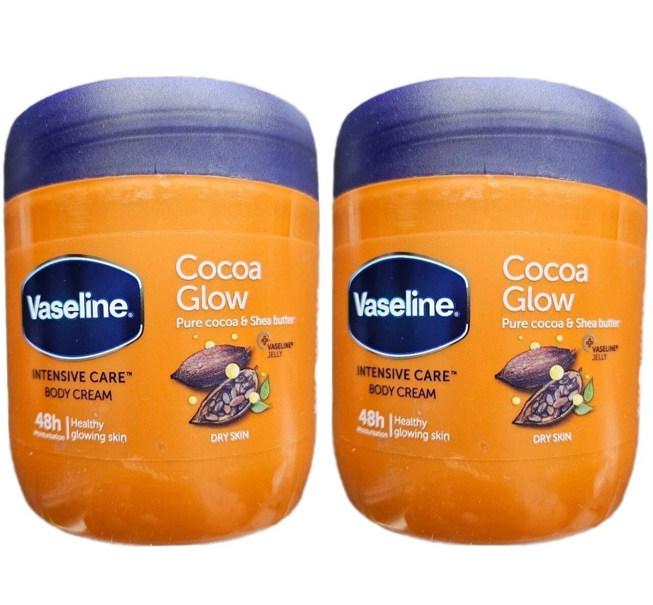 2 x 400ml Vaseline Intensive Care COCOA GLOW Body Cream for Healthy Glowing Skin