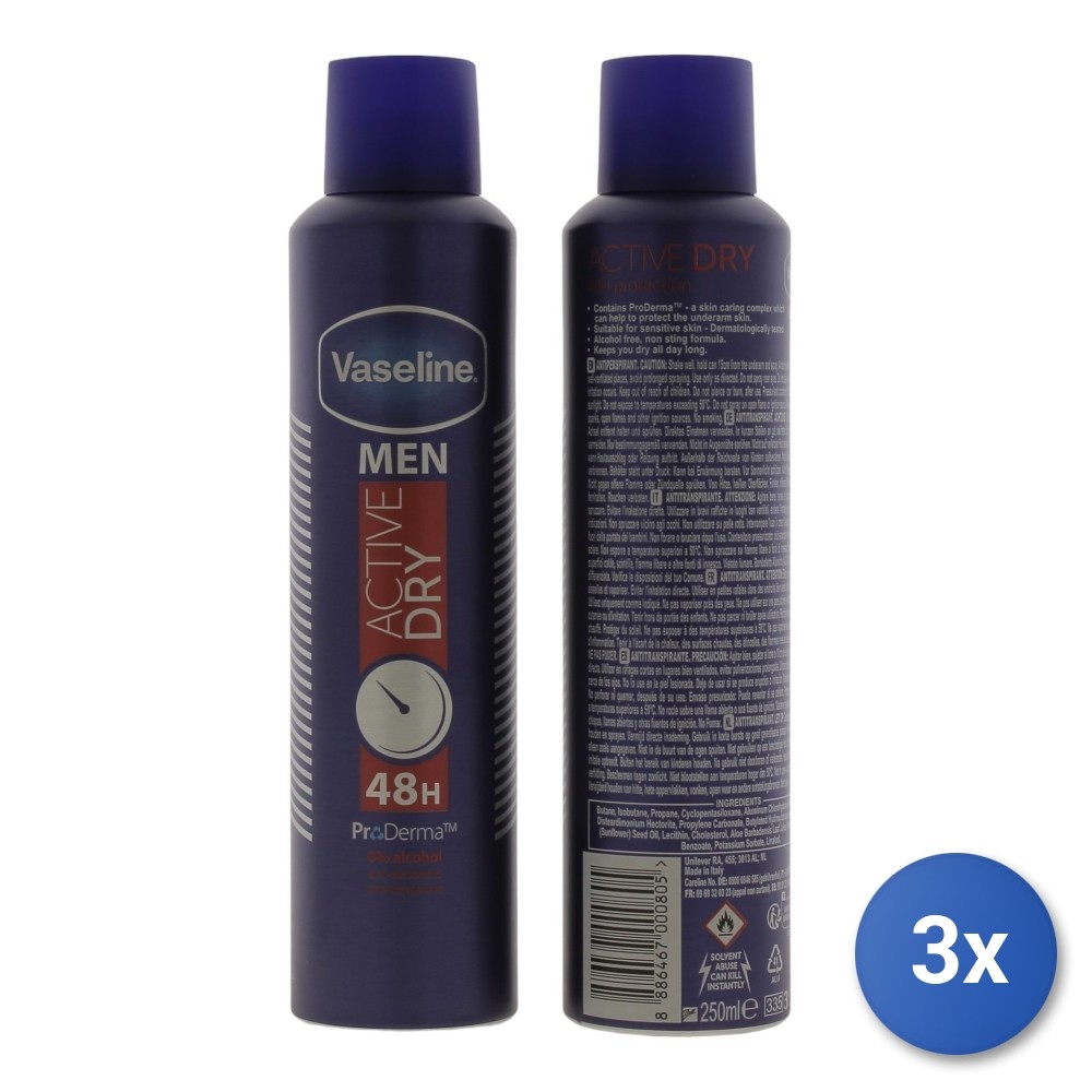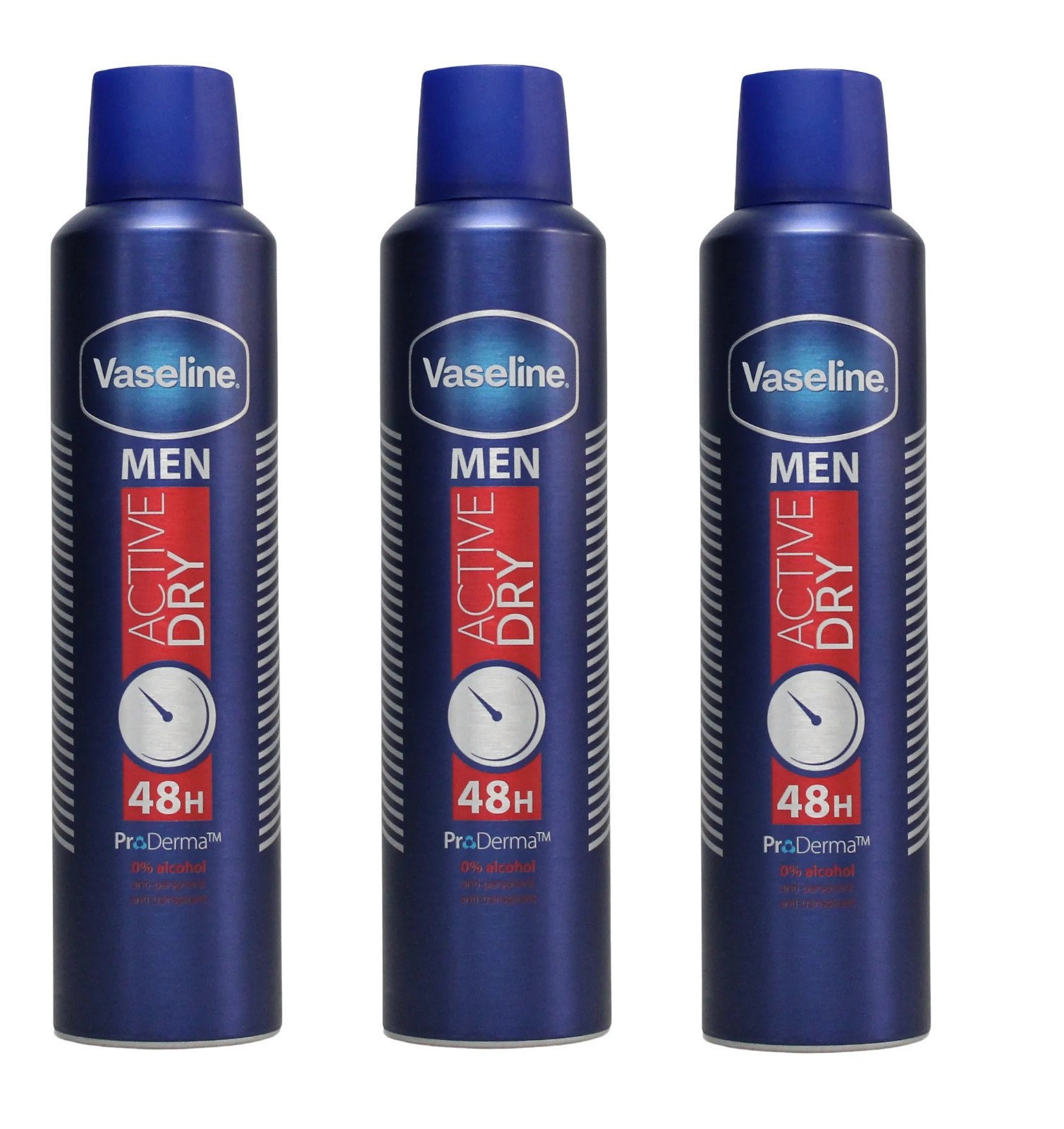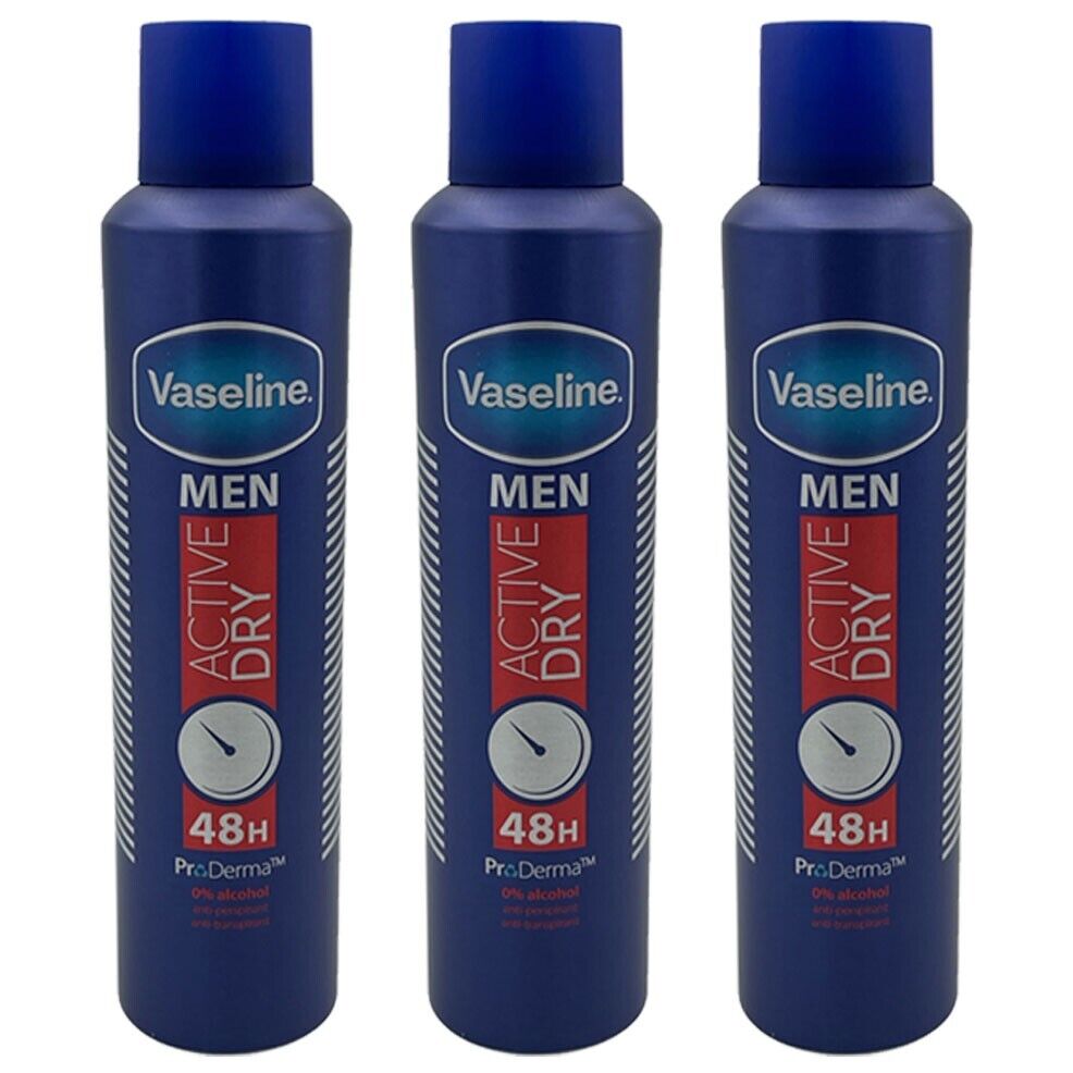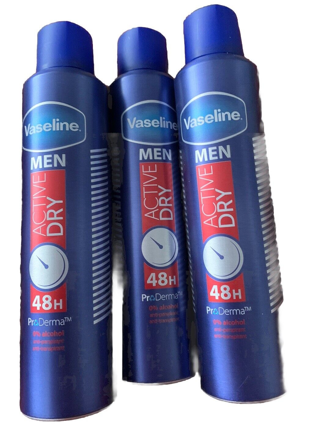3 x VASELINE MEN ACTIVE DRY 48hr PROTECTION ANTI-PERSPIRANT DEODORANT 250ml